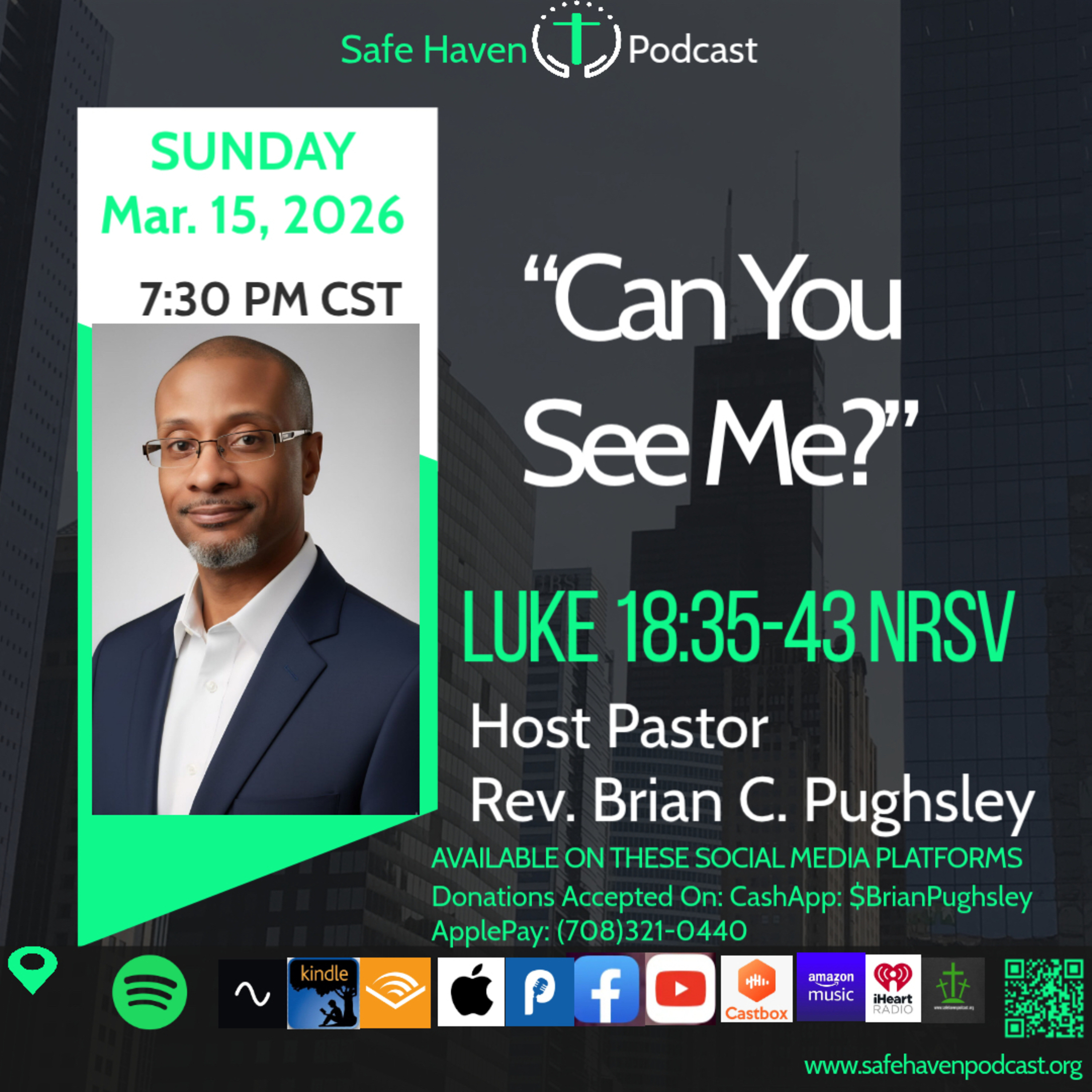 Rev. Brian Pughsley is preaching on a powerful message entitled: “Can You See Me?” from Luke 18. Listen as he speaks about how we may be at the end of our horizon but we have to strive to get God’s attention when we need Him ...