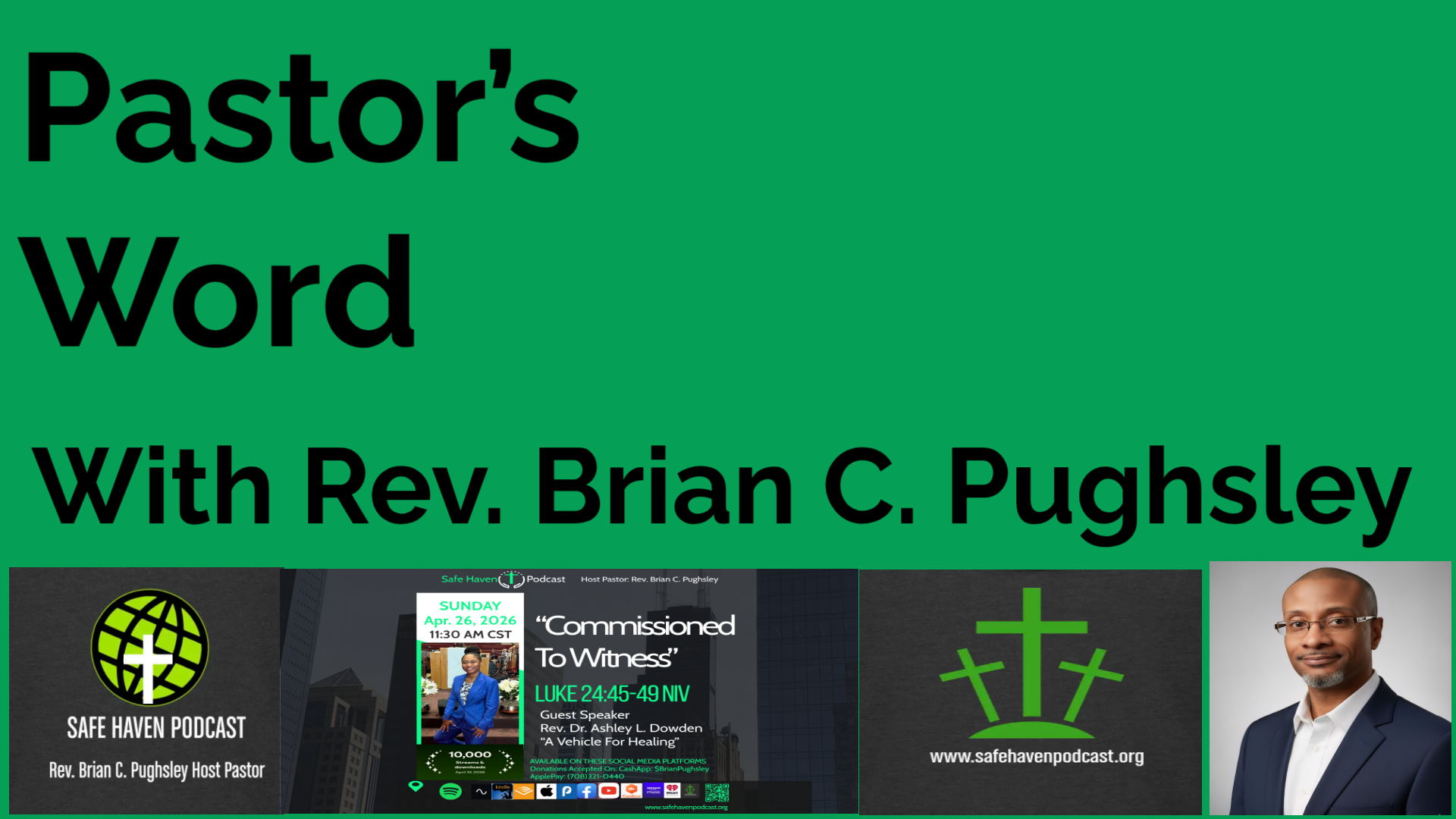 Safe Haven Podcast Presents The Seven Last Words of Christ. Rev. Brian Pughsley is teaming up with 6 other ministers to bring to you this incredible service today that represents the final moments of Jesus while He was nailed...